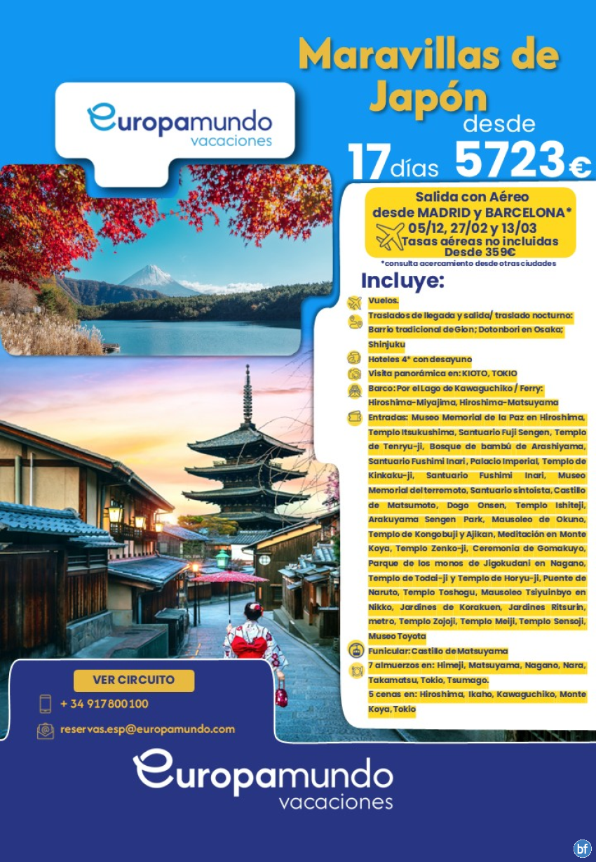 Maravillas de Japón. Salida con Aéreos desde Madrid y Barcelona
