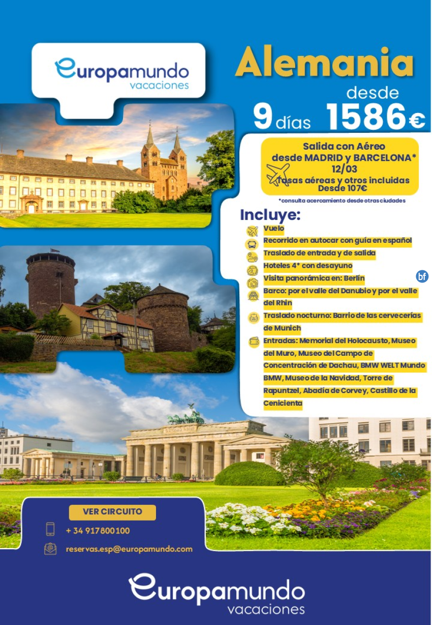 Alemania. Salida con Aéreos desde Madrid y Barcelona